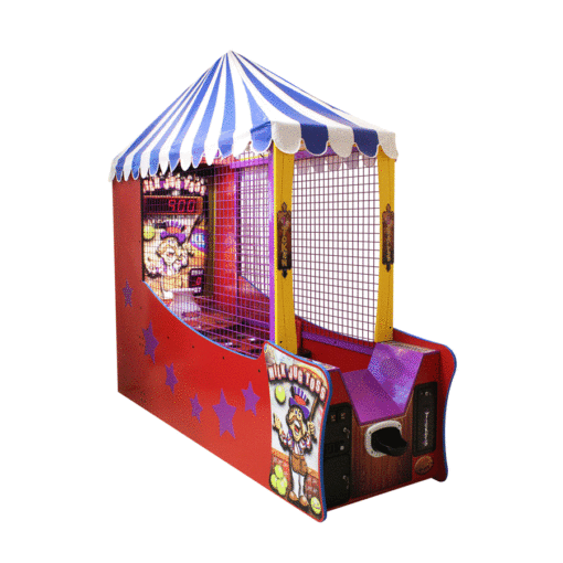 The all time carnival hit is now a redemption game. Players skillfully toss the balls into the milk jug or surrounding holes to win tickets. The interactive Carny voice heckles and entertains players, while they shoot for the Super Bonus by getting all the balls in the jug. Life-like carnival top, LED lit playfield, and optional Bonus marquee make this classic midway game an anchor piece for any locations skill wall